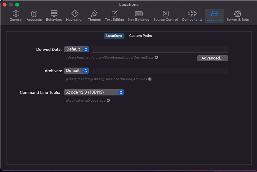 XCode Preference -> Locations