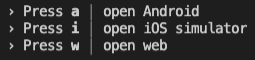 -> start expo developer server (Ctrl + C -> Off, R -> Reloading)