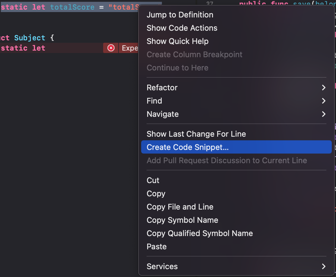 1. Code Snippet 을 생성하기 원하는 영역을 드래그 후 우클릭 -> Create Code Snippet 선택