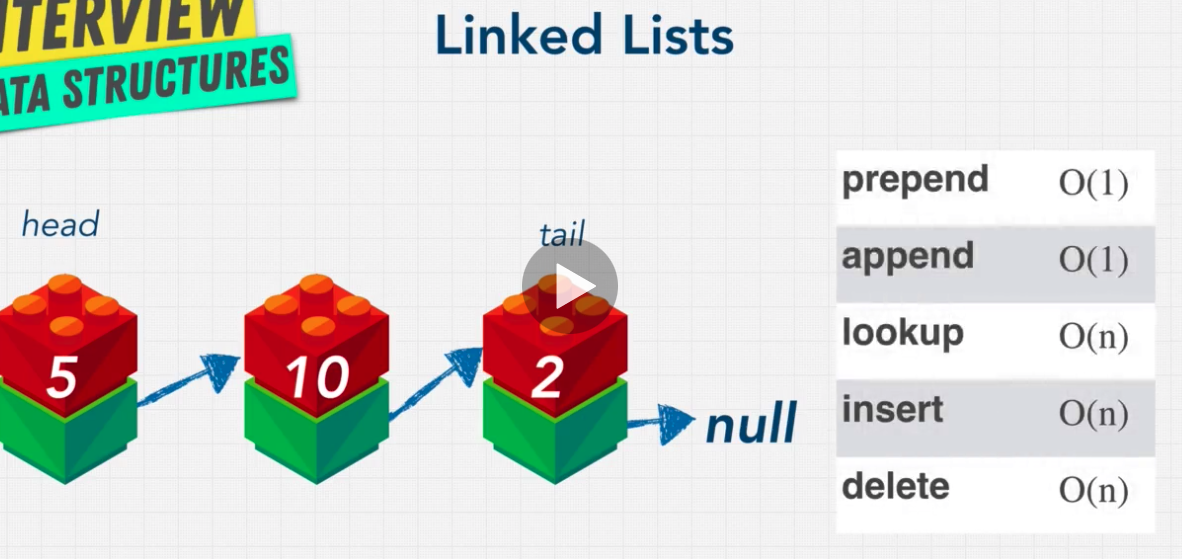 출처: https://www.udemy.com/course/master-the-coding-interview-data-structures-algorithms/ Linked Lists 는 Singly Linked List, Doubly Linked List 두개로 나뉘어요.